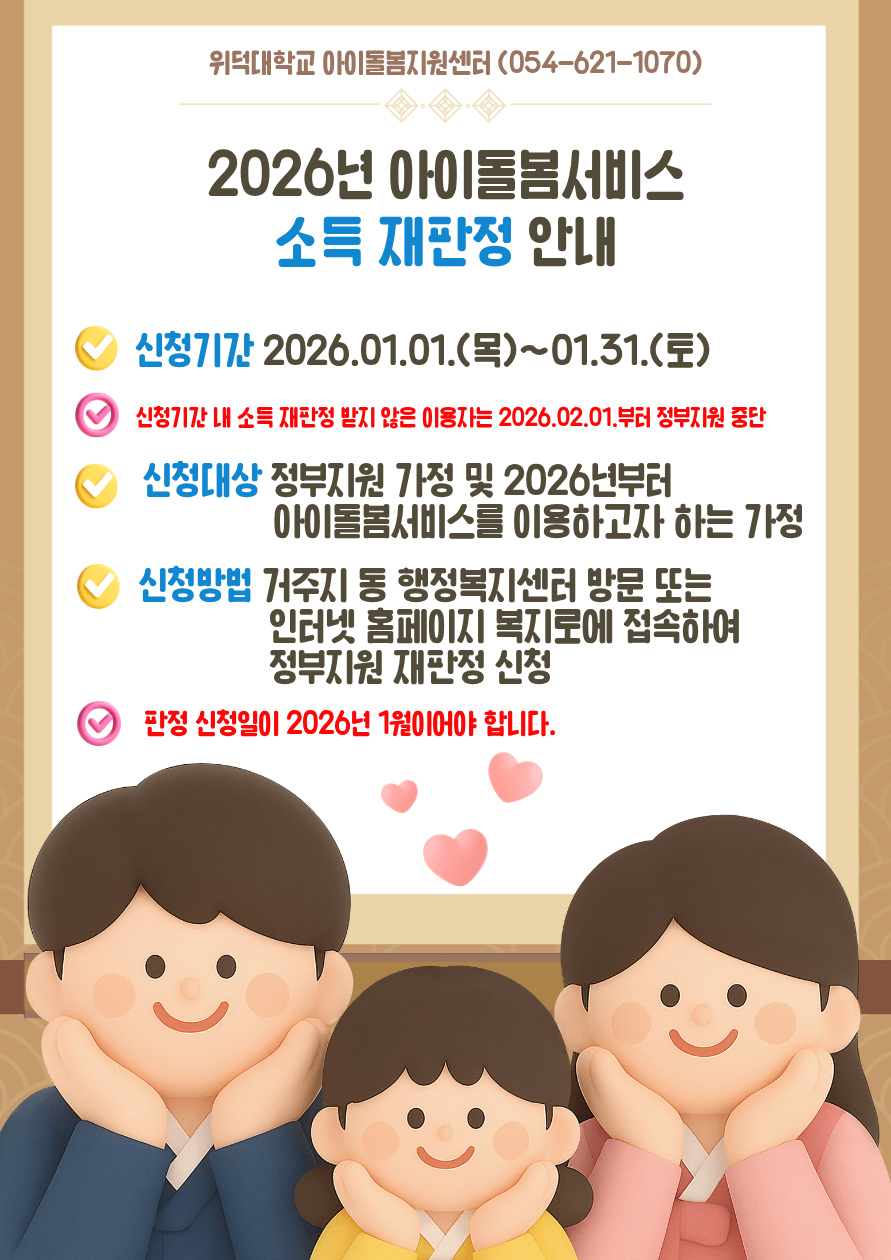 [안내] 2026년 아이돌봄지원서비스 소득 재판정 안내